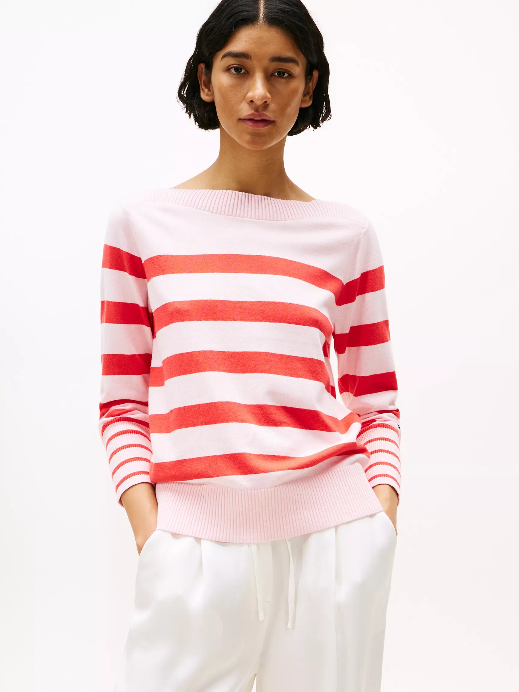 Tommy Womens' Stripe Boatneck Sweater/Pink Stripe